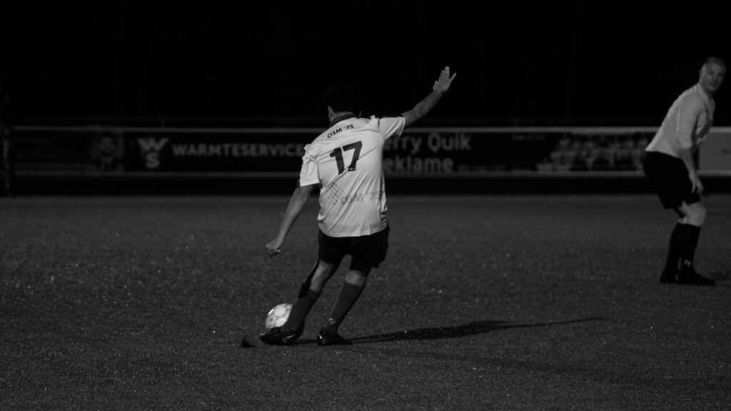 TERUG OSM’75 O21-1 vs OSM’75 Actiefoto’s van Sallah, speler van OSM O23-1, tijdens een oefenwedstrijd tegen een combinatie team van OSM. Graphix by JB legde zijn inzet, techniek en passie vast in scherpe sportfoto’s.
